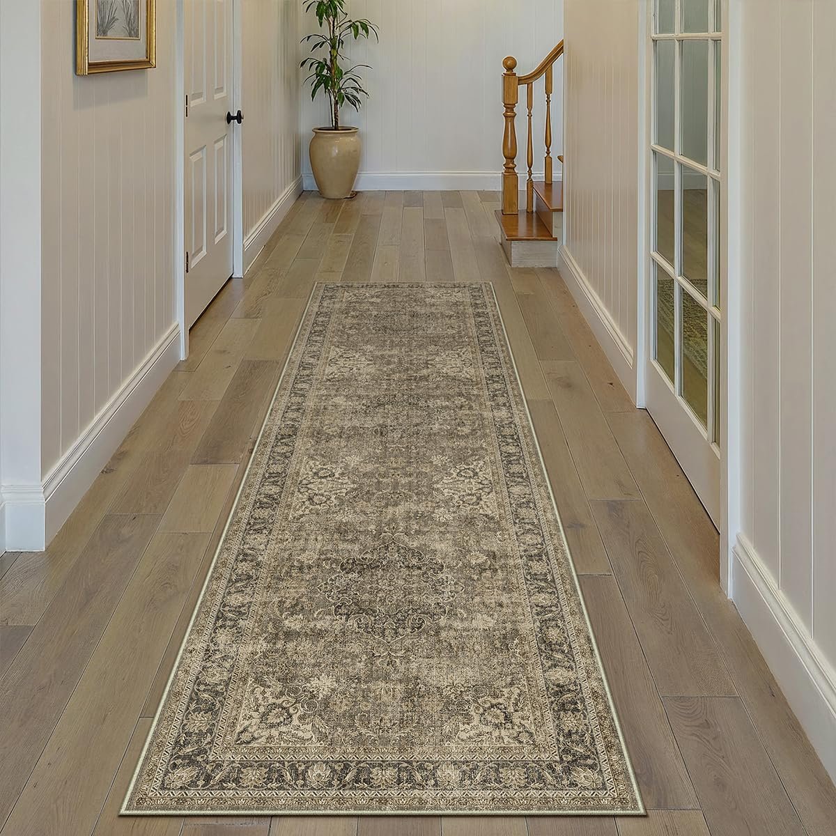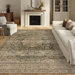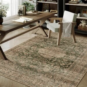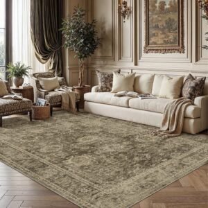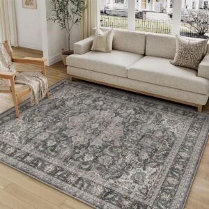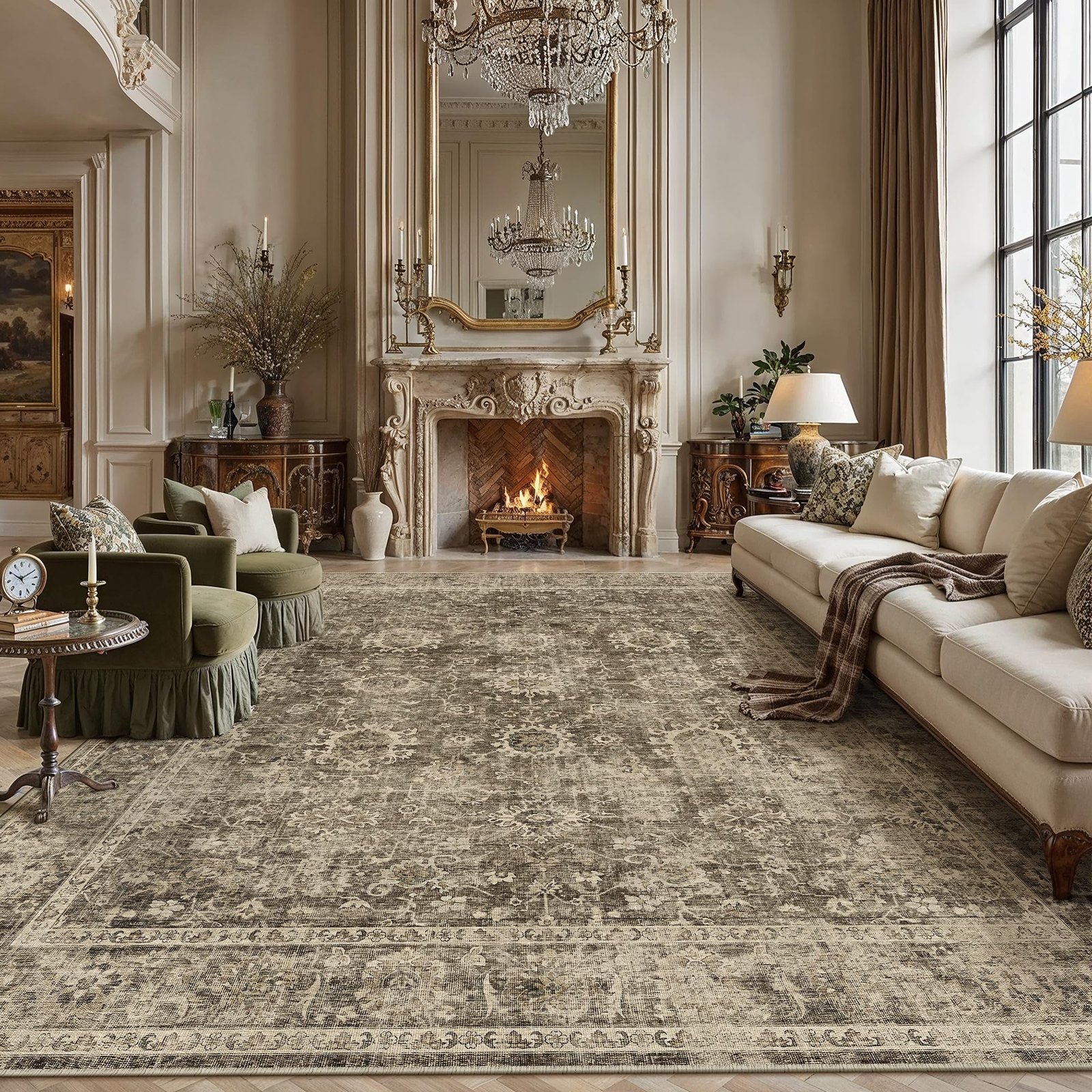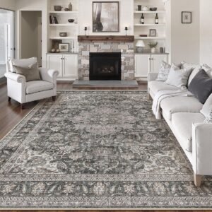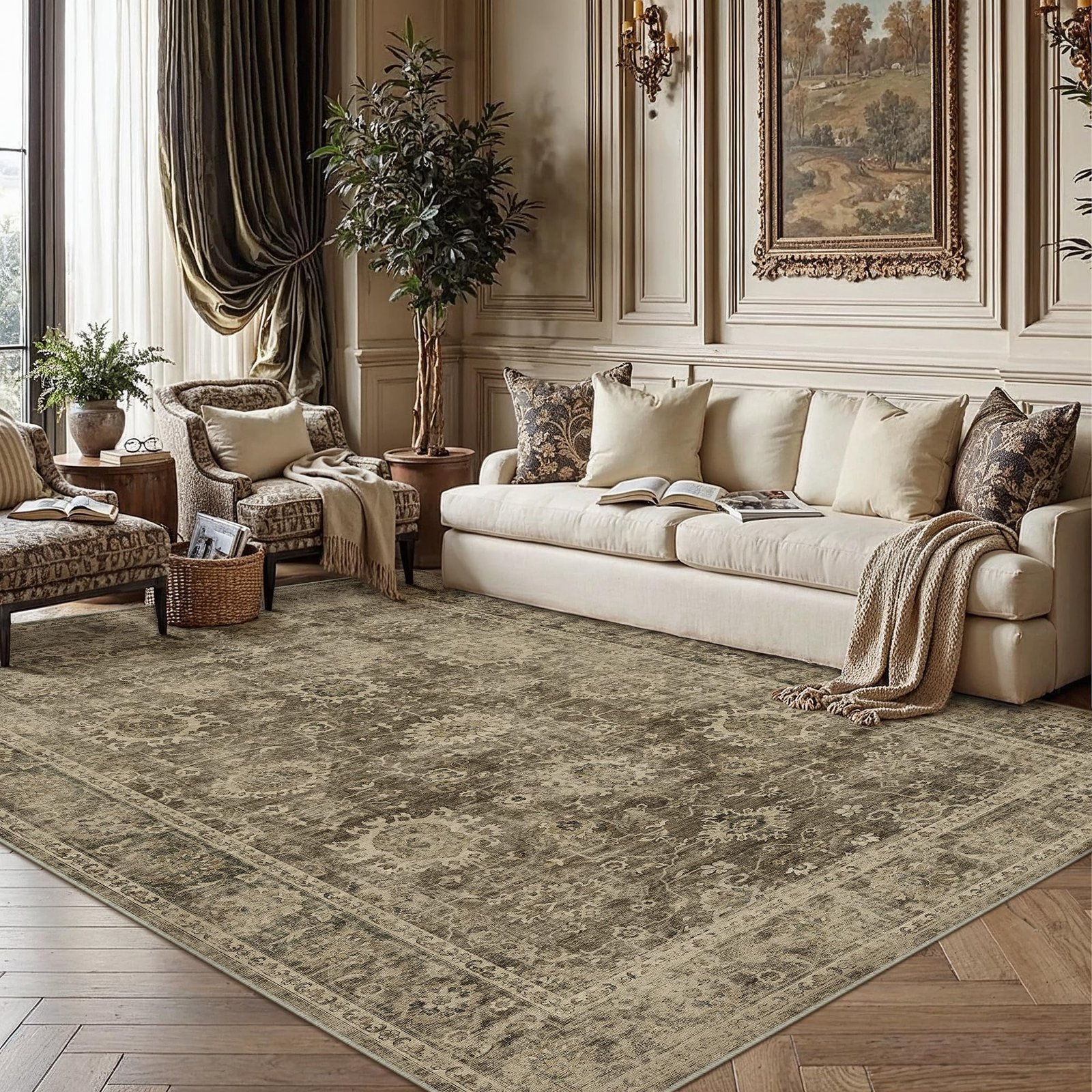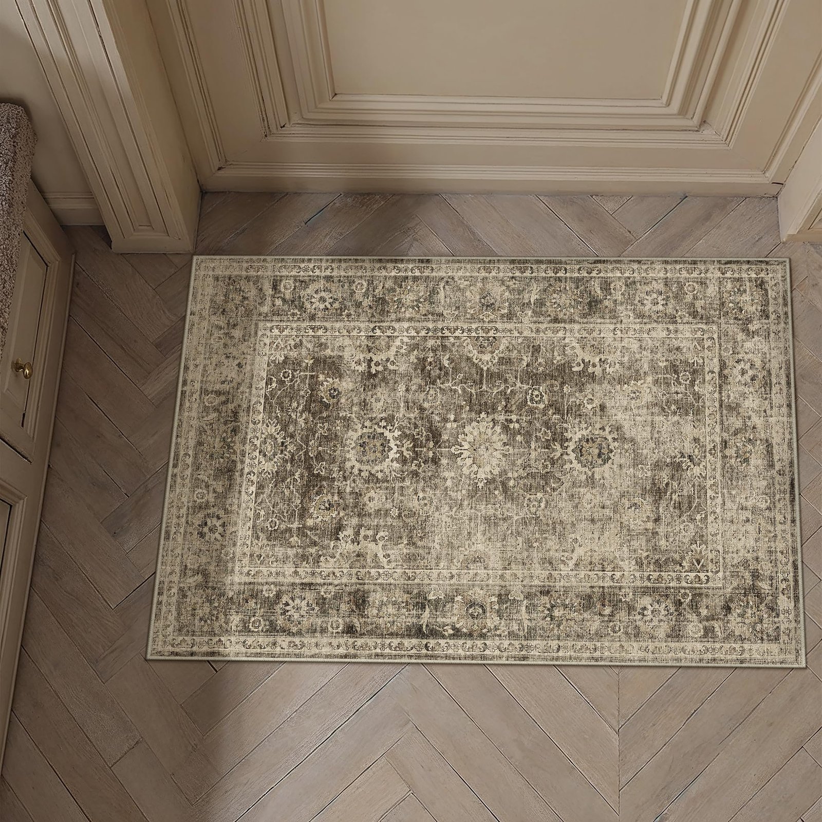 8×10 Washable Brown Area Rug Vintage Living Room Bedroom Carpet Non-Slip Soft Low Pile Distressed Indoor Large Throw Rug