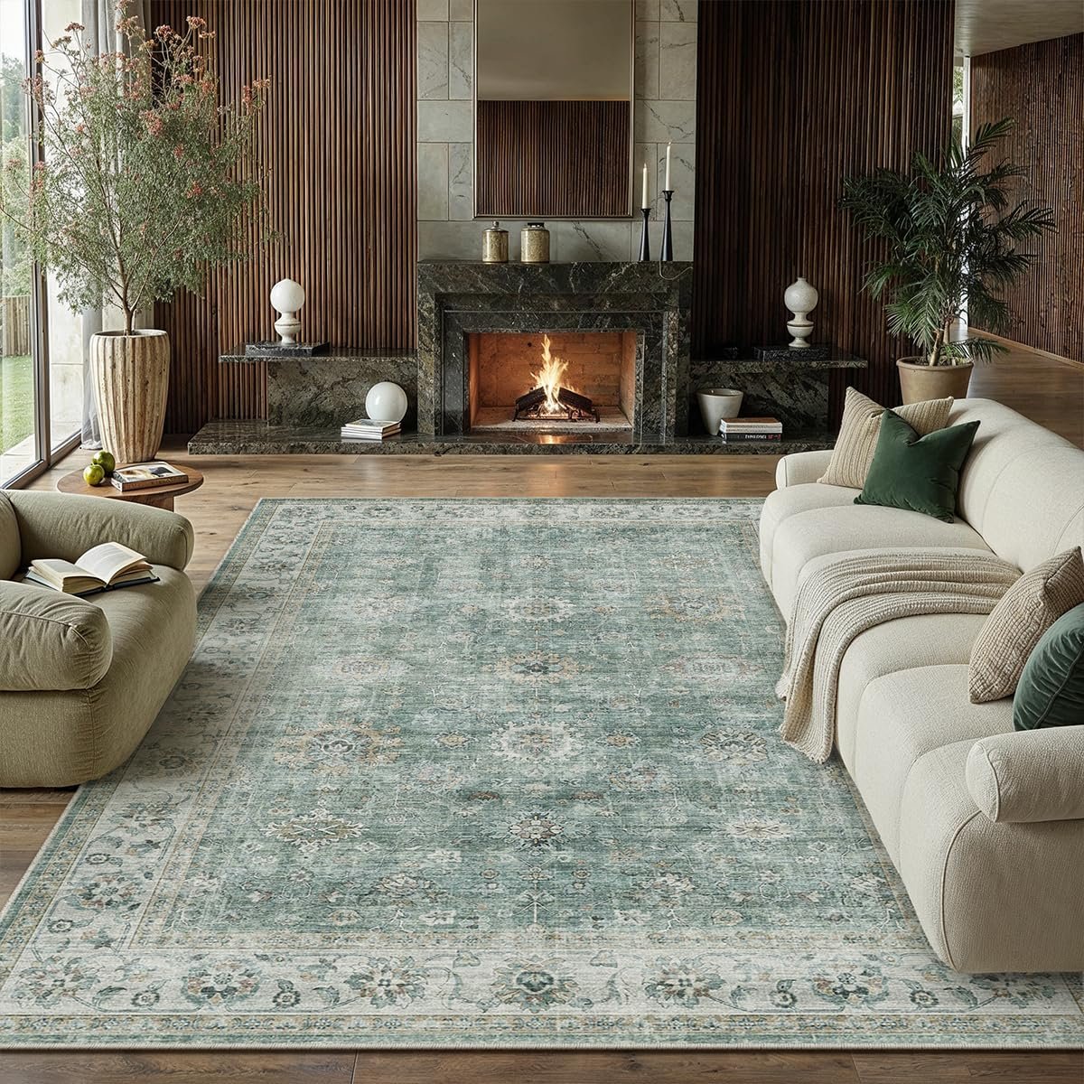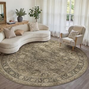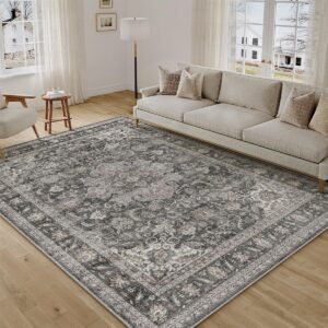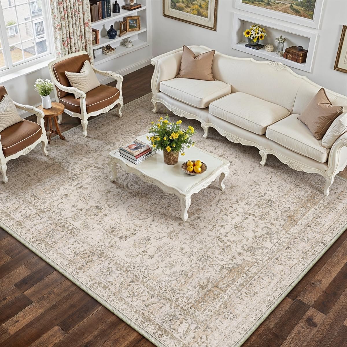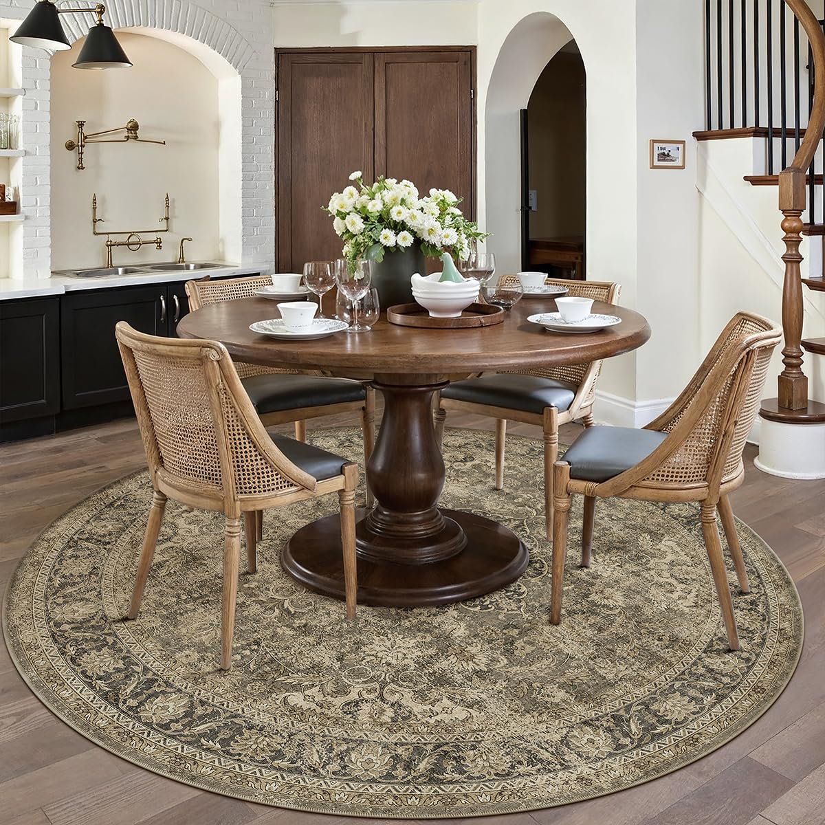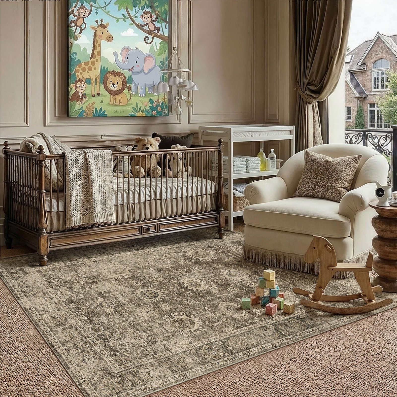 8×10 Washable Brown Area Rug Vintage Living Room Bedroom Carpet Non-Slip Soft Low Pile Distressed Indoor Large Throw Rug