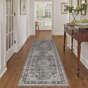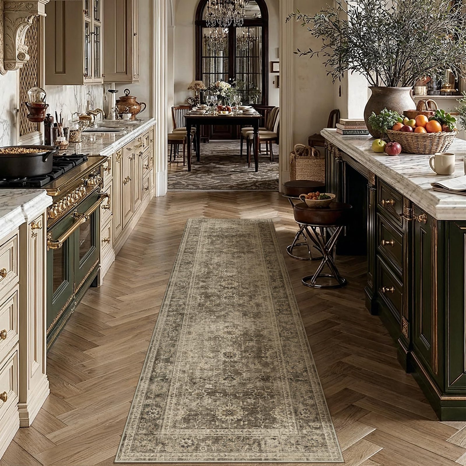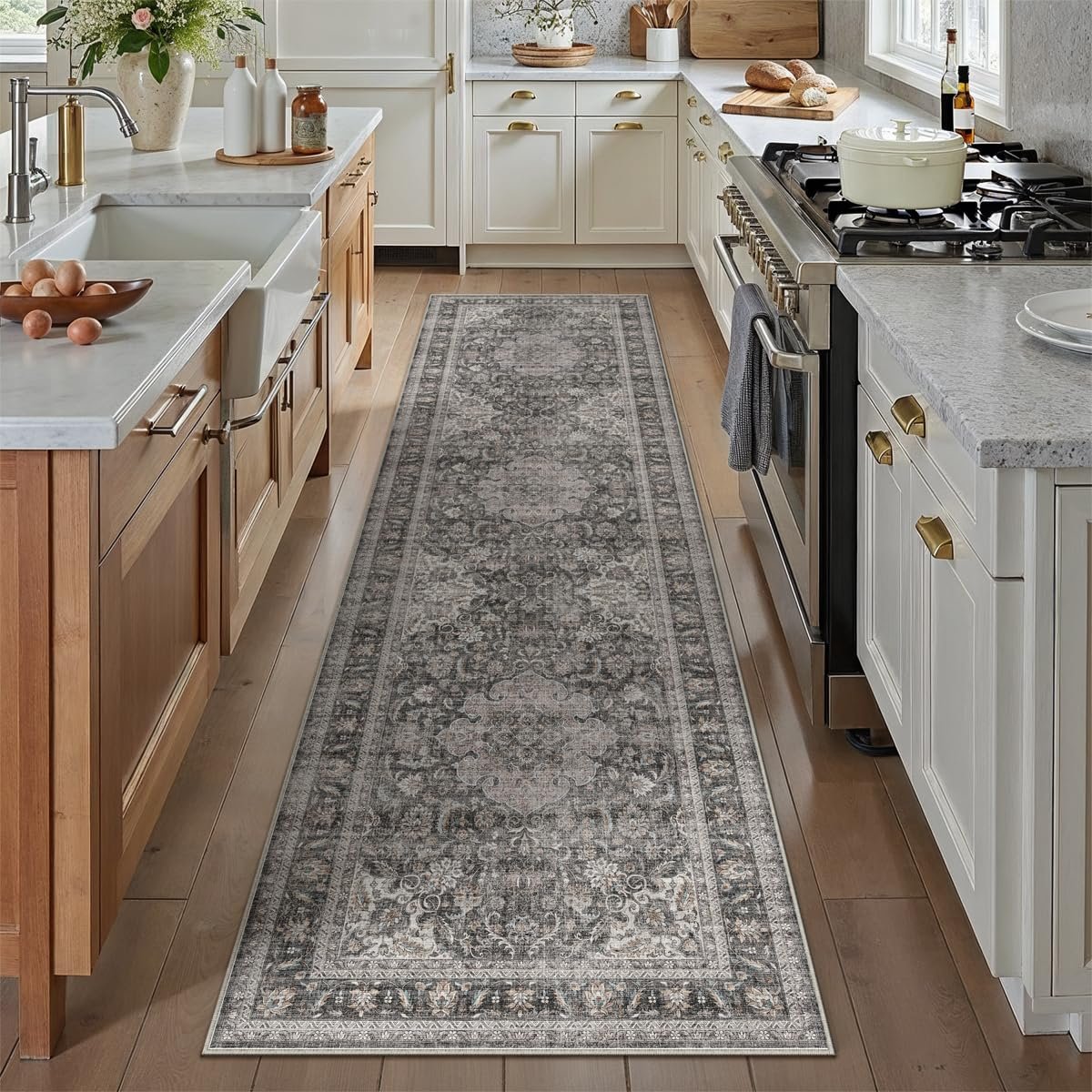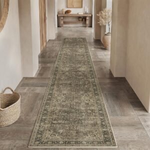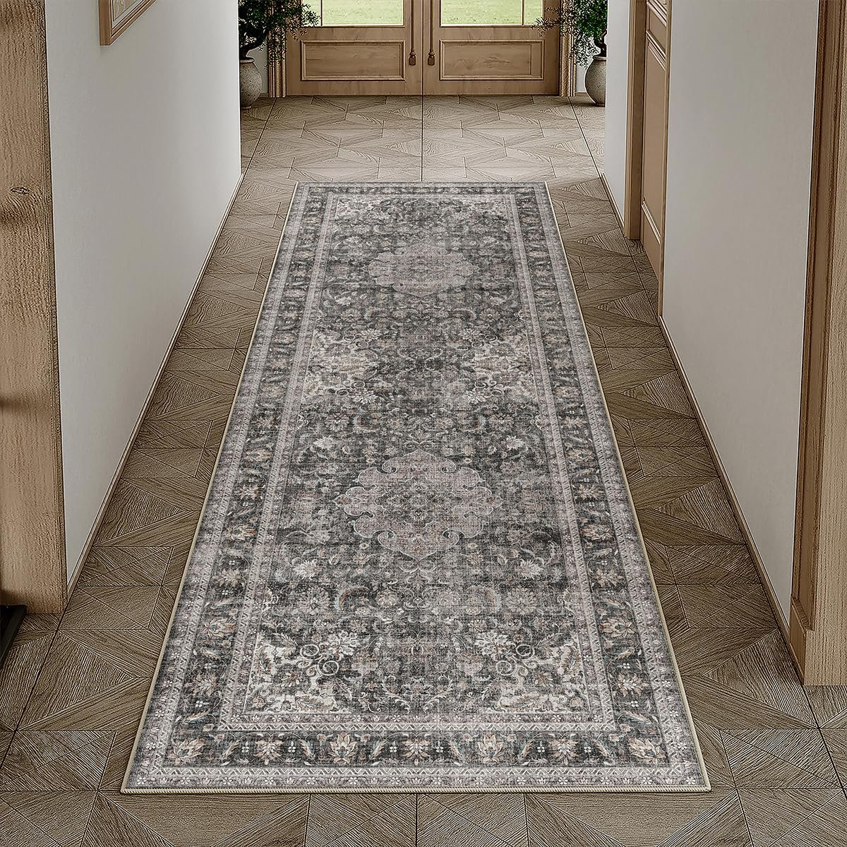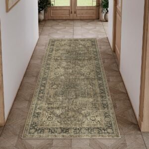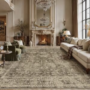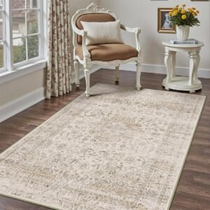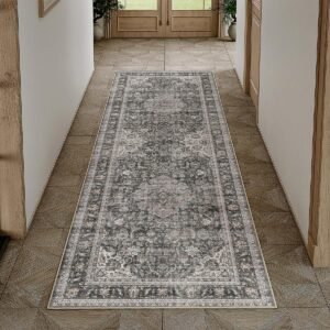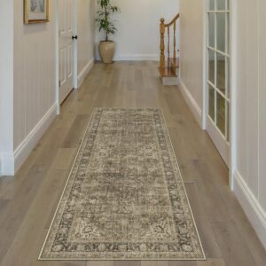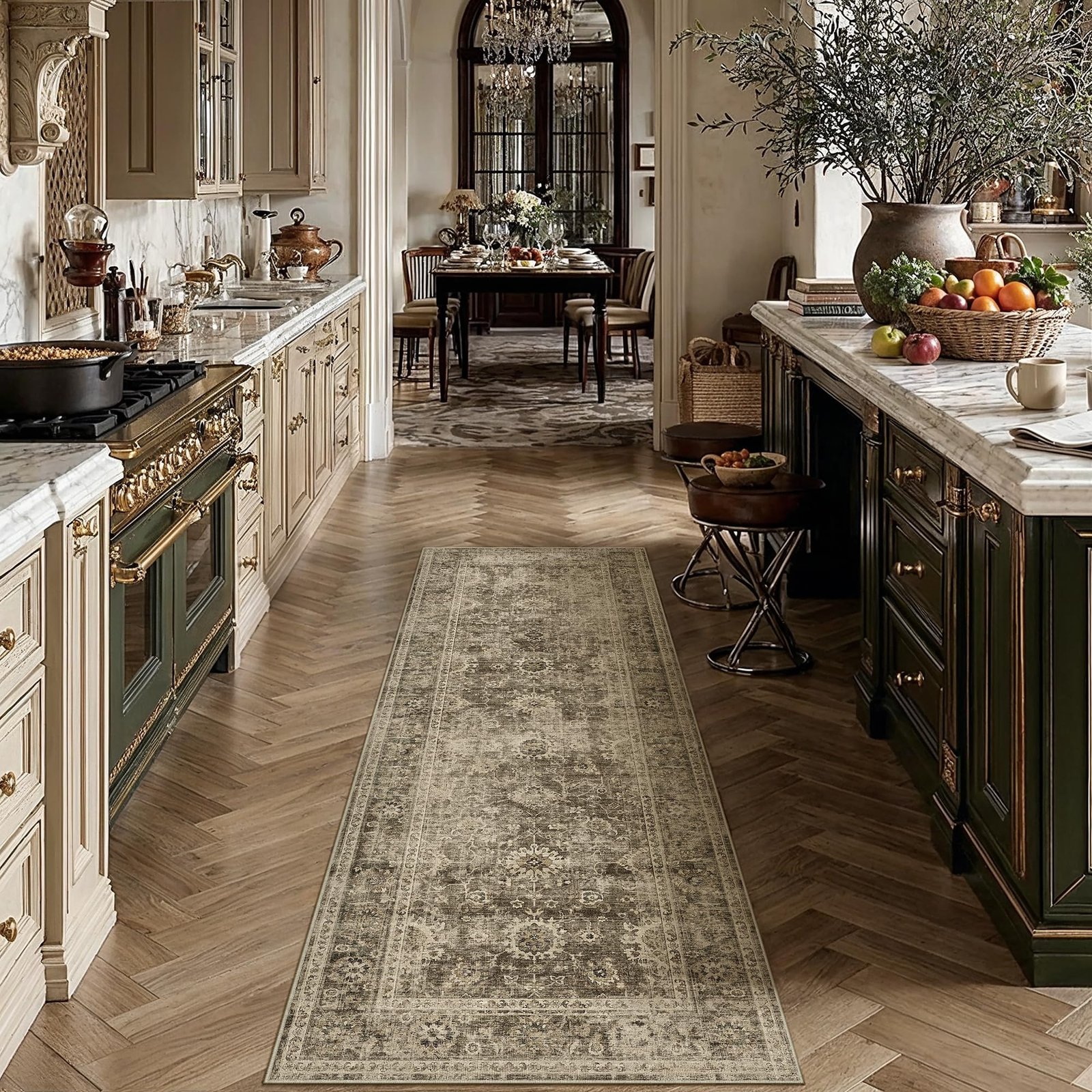 8×10 Washable Brown Area Rug Vintage Living Room Bedroom Carpet Non-Slip Soft Low Pile Distressed Indoor Large Throw Rug