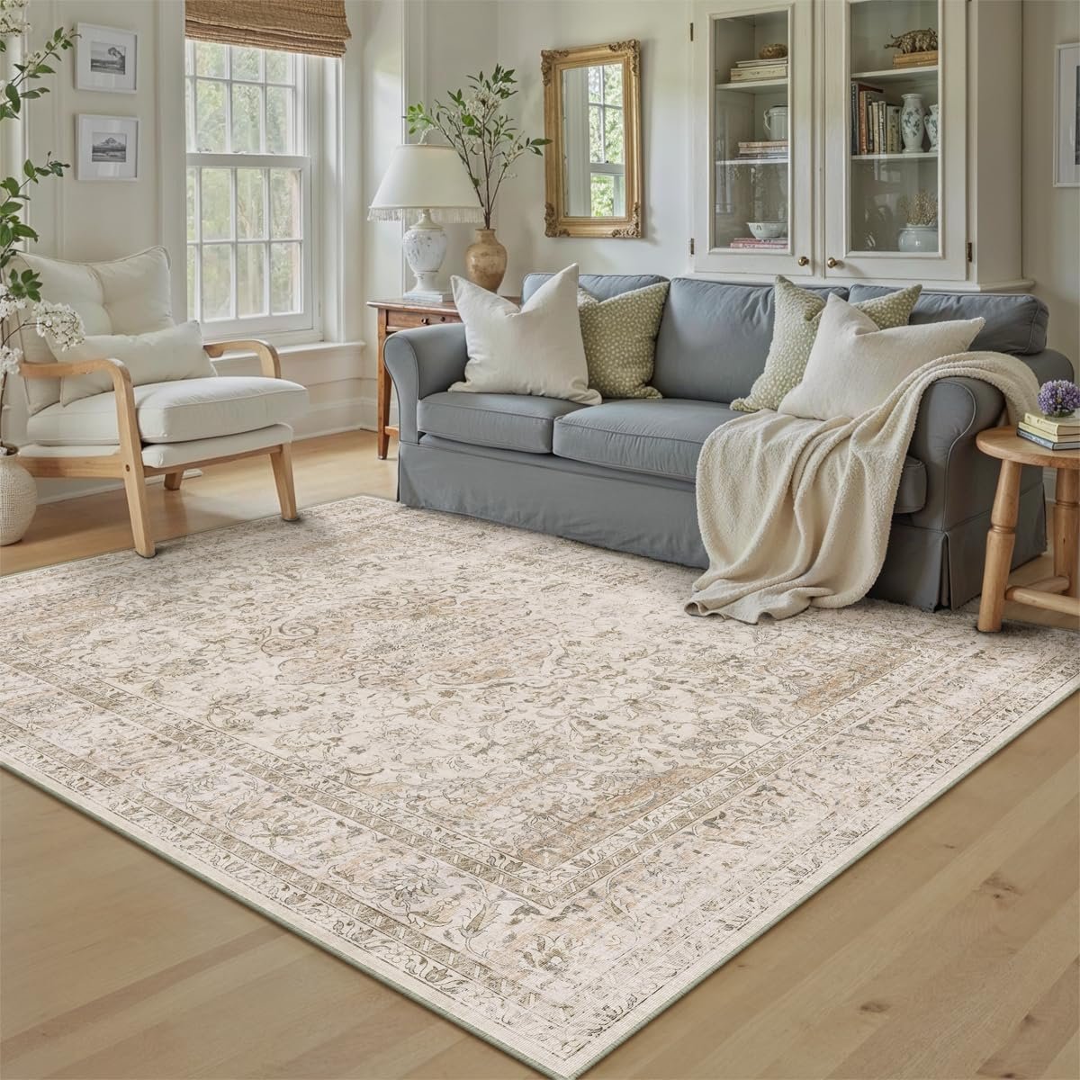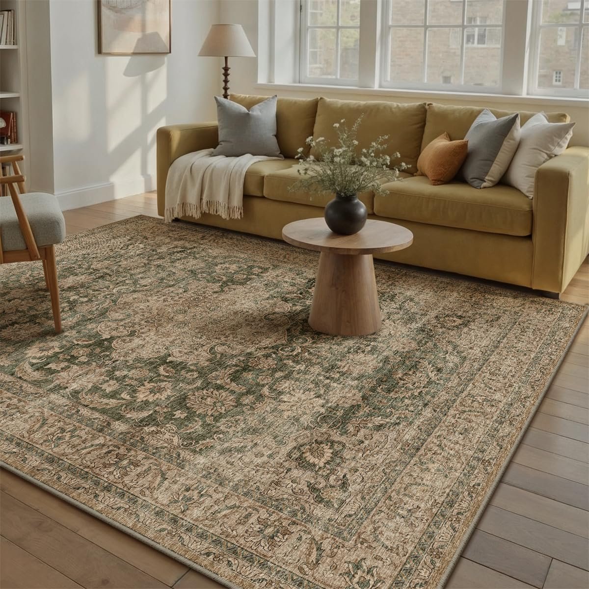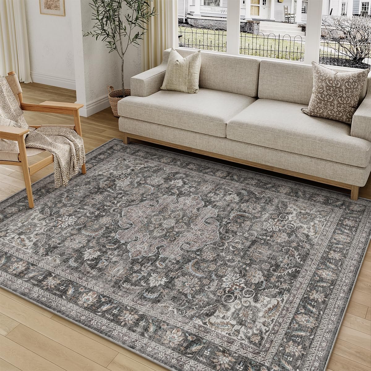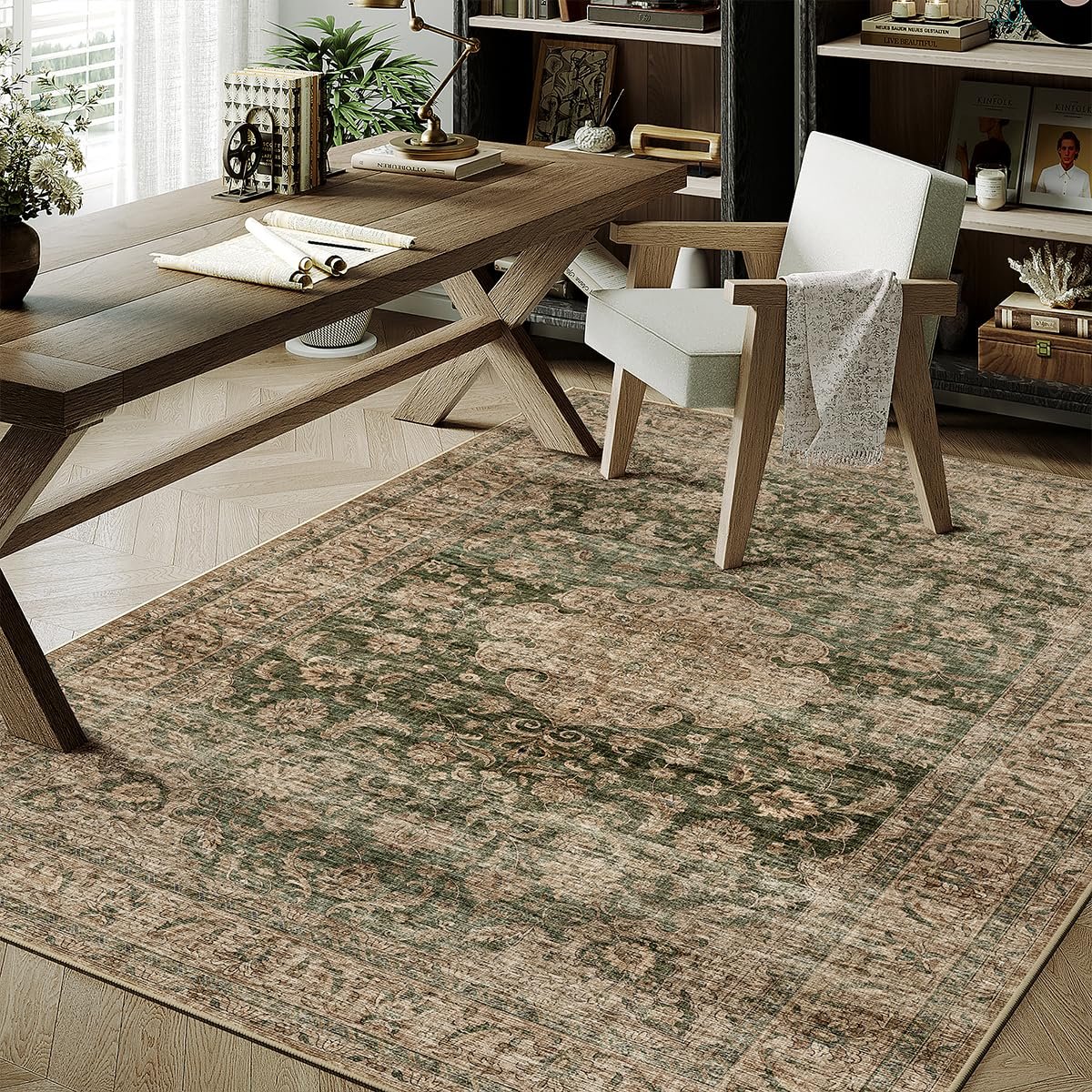 8×10 Washable Brown Area Rug Vintage Living Room Bedroom Carpet Non-Slip Soft Low Pile Distressed Indoor Large Throw Rug$85.99
