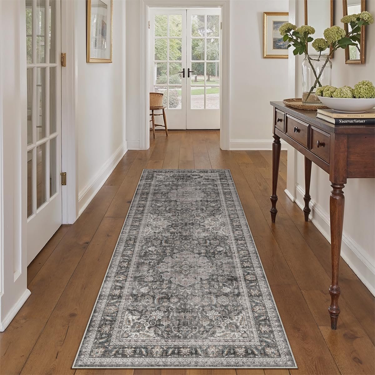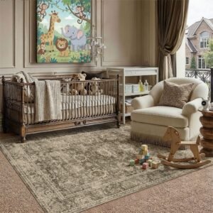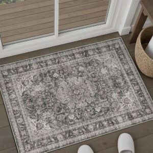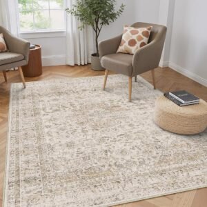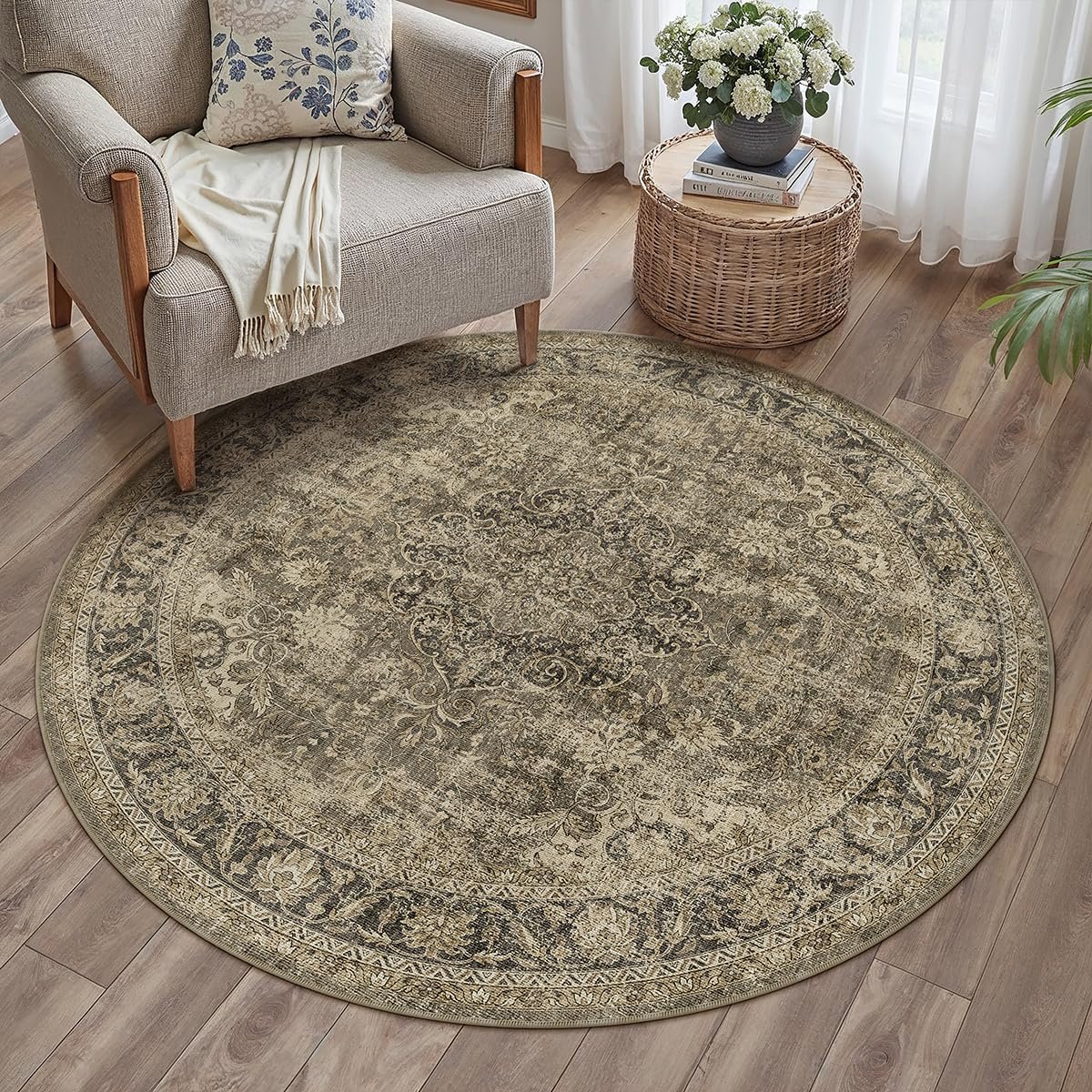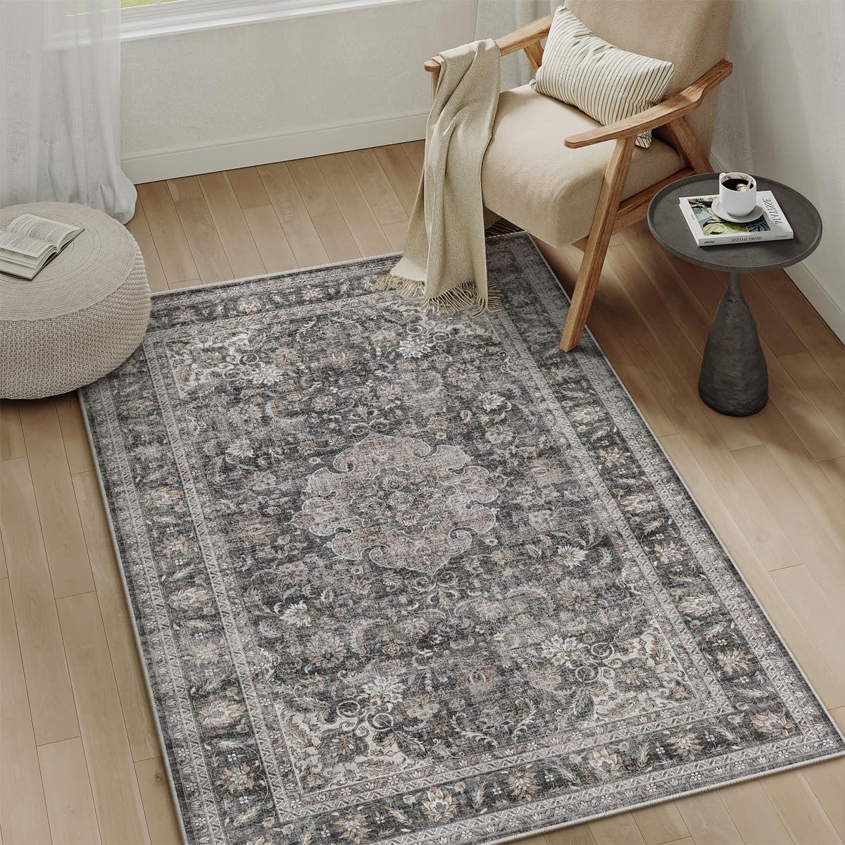 8×10 Washable Brown Area Rug Vintage Living Room Bedroom Carpet Non-Slip Soft Low Pile Distressed Indoor Large Throw Rug$85.99